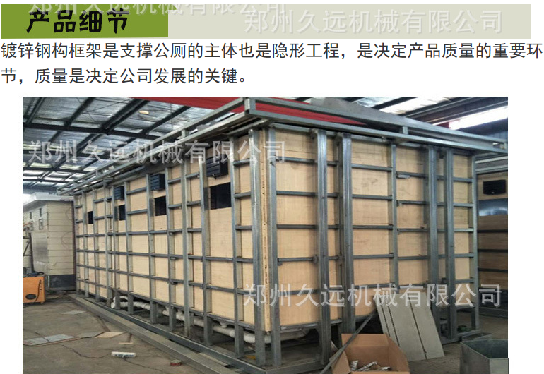 1、房體結(jié)構(gòu): 采用輕鋼龍骨結(jié)構(gòu),鋼材全部使用國家標準鍍鋅鋼材。根據(jù)房體的大小特選用國標方管(50-100)焊接而成。鍍鋅管厚度為2.8mm,方管經(jīng)過除銹后進行鍍鋅、防腐處理。這樣就會延長廁所使用壽命。