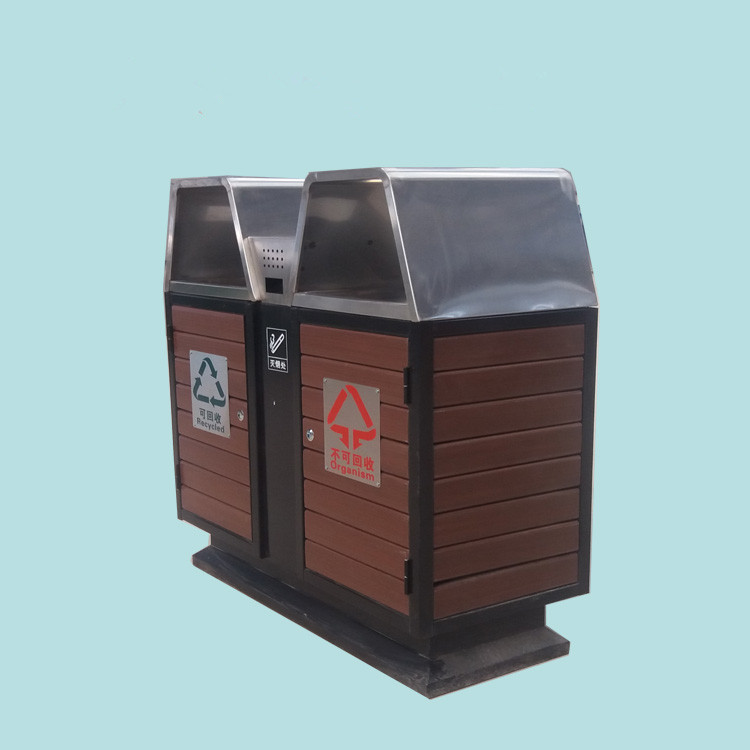 環(huán)保分類鋼木垃圾桶桶身可選用實木、防腐木、塑木等環(huán)保材料;內(nèi)桶采用加厚鍍鋅板,防腐防銹能力強;桶架采用冷軋鋼板,經(jīng)過酸洗除銹噴粉高溫烤漆處理。整體美觀大方、堅固耐用。